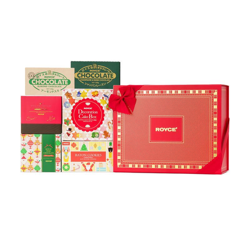 This Christmas, give the gift of pure indulgence with our Jingle Selection hamper. A treasure trove of festive flavours awaits, featuring a tempting Christmas Decoration Cake Box "L" (27pcs), Christmas Pure Chocolate "Milk and Creamy White", Christmas Baton Cookies "Coconut", Pure Chocolate "Sweet and Milk", Bar Chocolate "Champagne & Raisin", and Bar Chocolate "Almond".